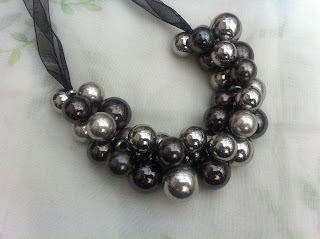 I was inspired to make this necklace after seeing a wreath made completely out of glass Christmas baubles. It was a truly lovely decoration but very delicate and very expensive. However, I loved it so much that, if possible, I would have worn it!